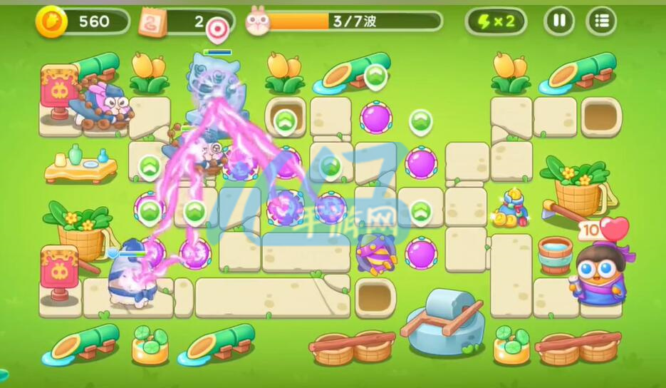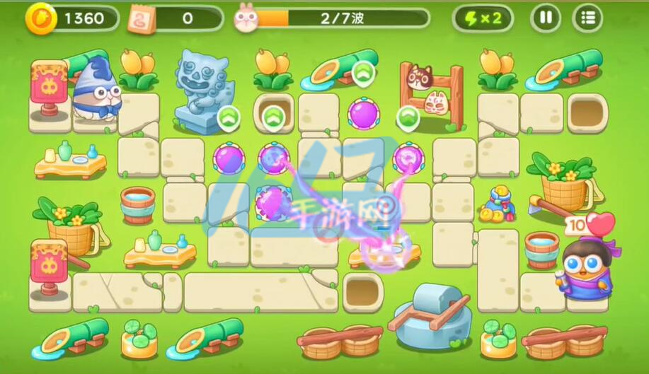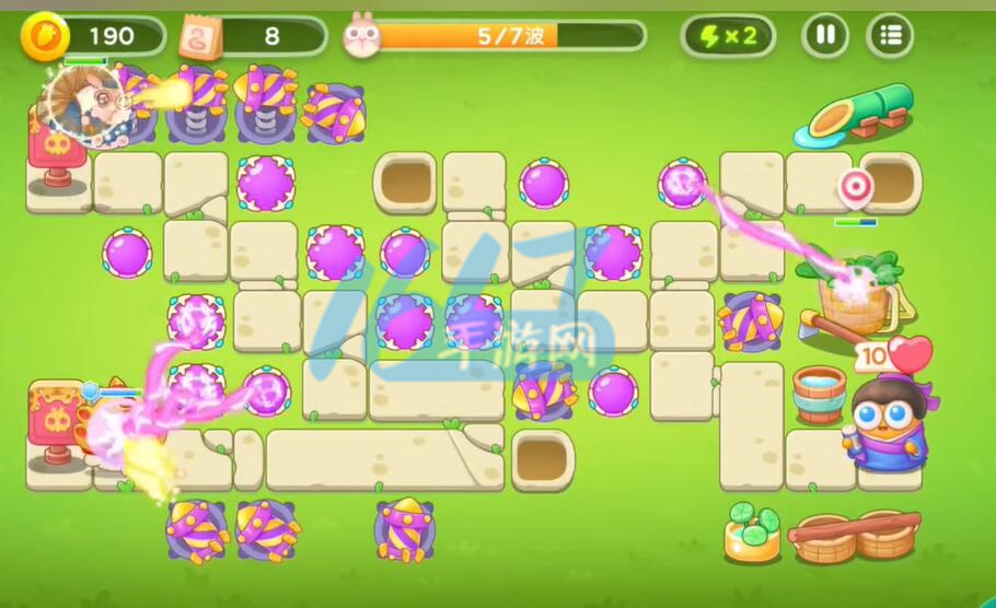 5、利用右边的魔法球清理菜篮,其余的攻击兔子。