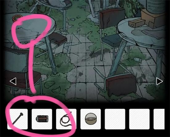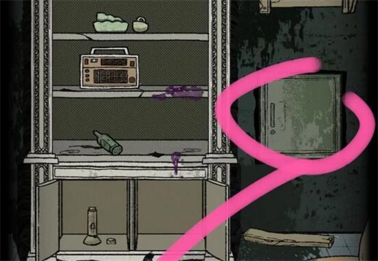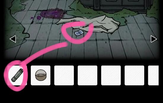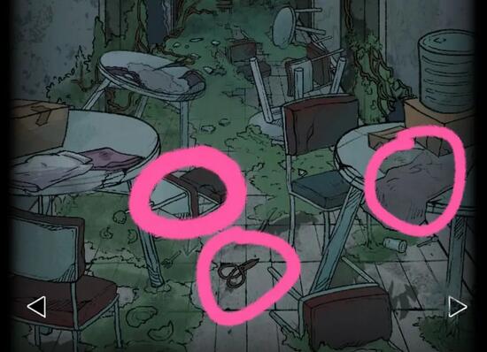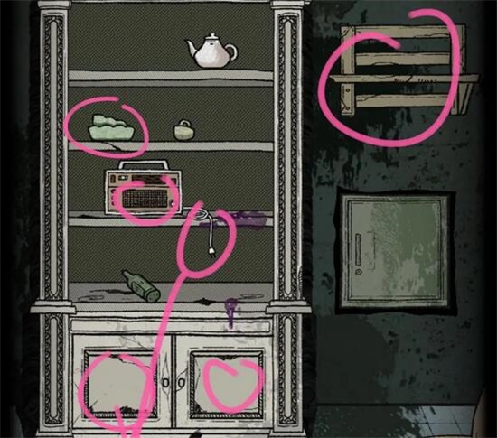 2、把下图所示的碟子拿走可以得到钥匙,使用剪刀把收音机的电线剪短,然后打开左边的柜子,查看手电筒。