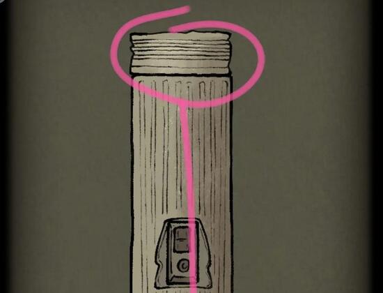 3、使用餐刀把手电筒盖撬开,拿走里面的电池。