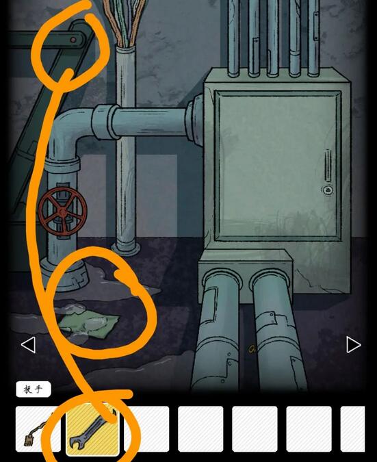 1、先把下图所示左上角的扳手捡起来,然后挪开左下角的模板。