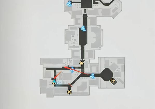 具体位置:上面中间,传送到最近传送点,路线如下。
